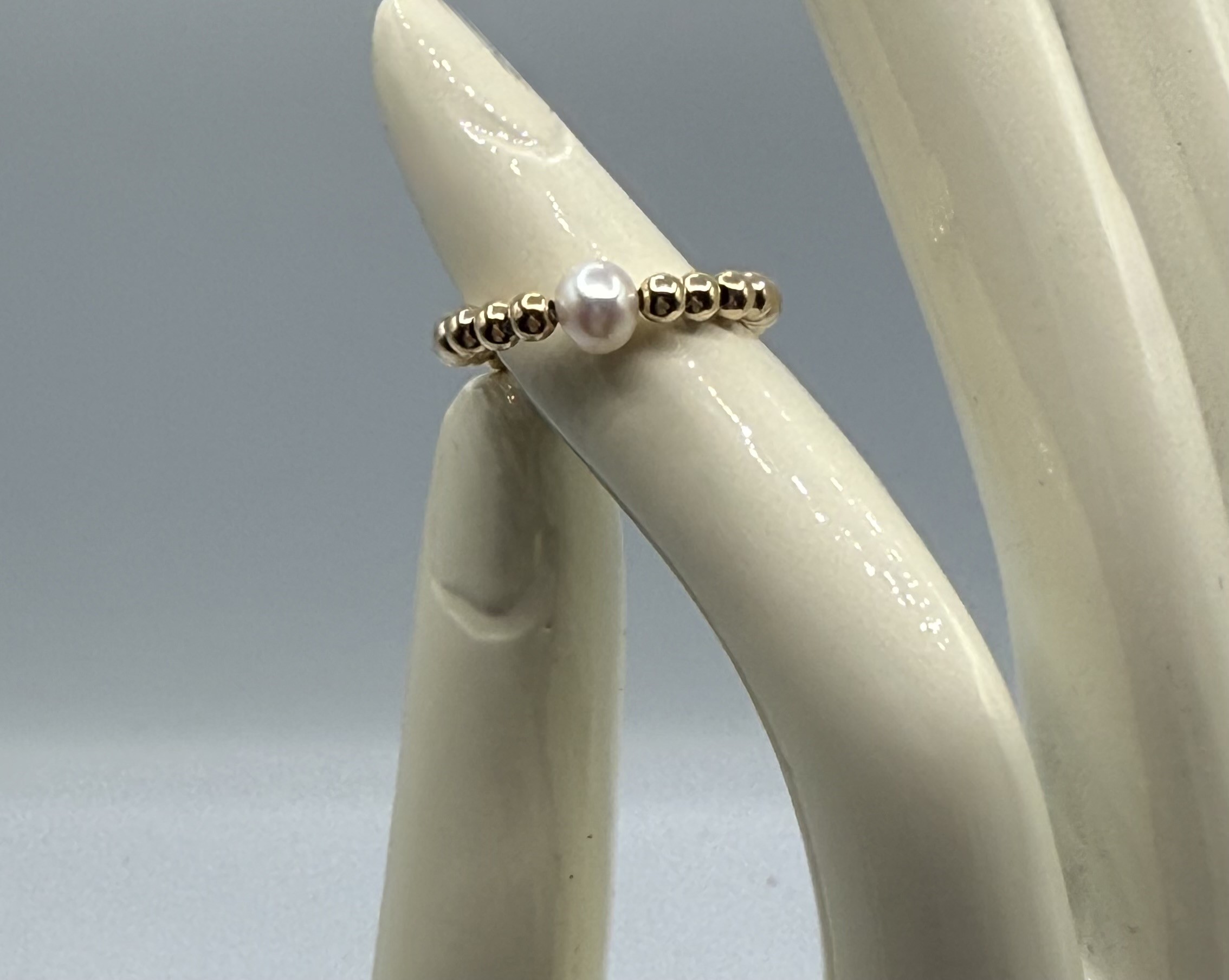 This single 6mm white freshwater cultured pearl is accented with 3mm 14 kt. gold filled beads crafted on elastic making it a versatile fit for everyone.